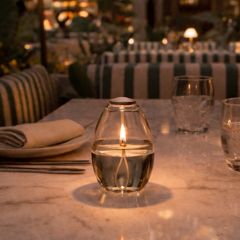 - Recharge intégrée en paraffine liquide, garantissant aucune coulure et aucune fumée