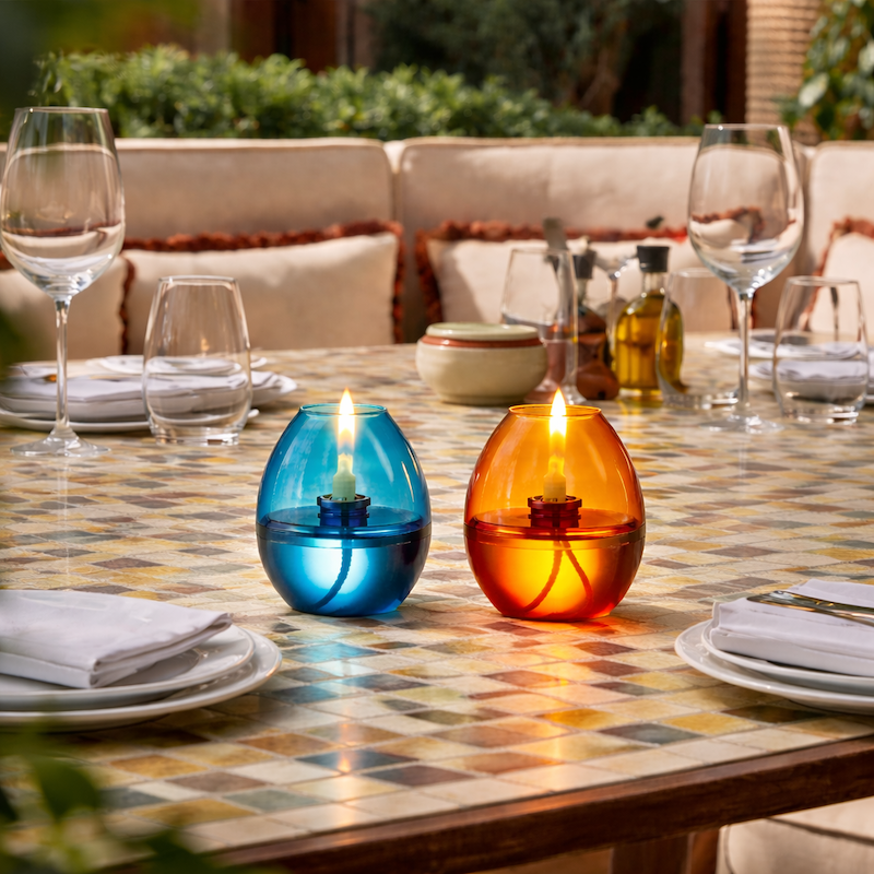 Le photophore Sixties ne nécessite aucun entretien : il peut rester en place et être allumé jour après jour. Il s’éteint par une simple pression latérale, sans souffler sur la flamme.