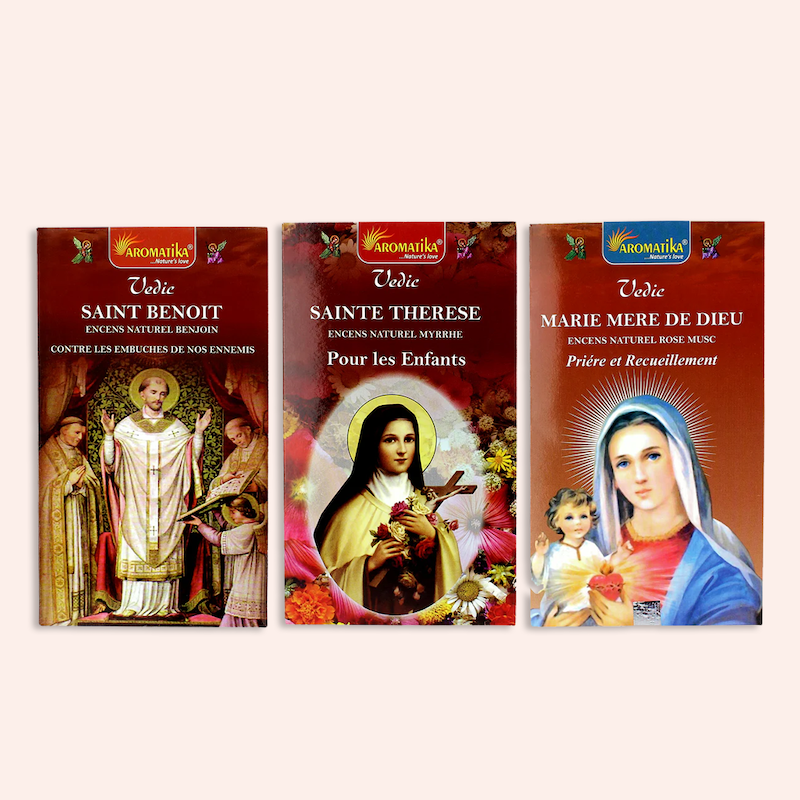Bâtonnets d'encens 15 g pour prières avec effigie, de composition 100% naturelle.
