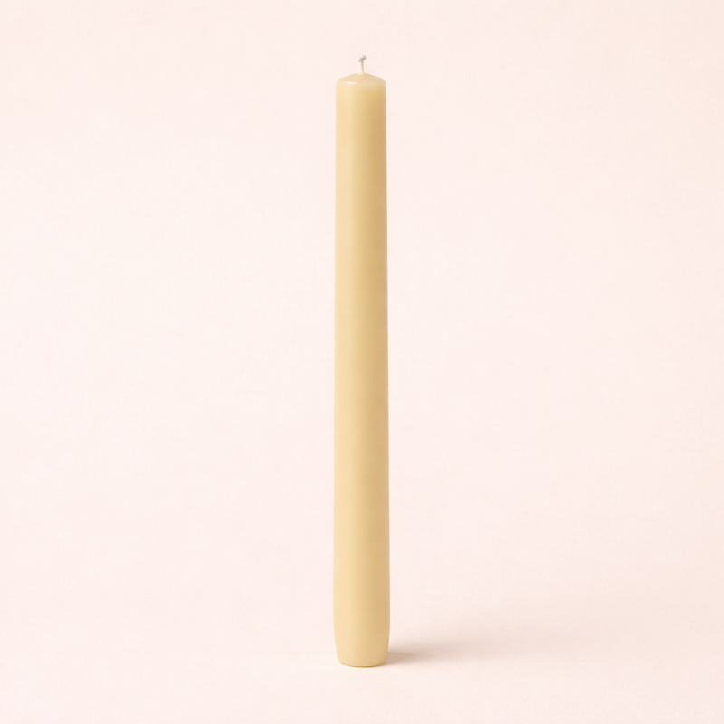 Contrairement aux bougies enrobées, sa teinte homogène imprègne toute la cire, garantissant un rendu esthétique constant même en fin de combustion. Son format droit et cylindrique Ø23 mm – hauteur 270 mm est idéal pour les bougeoirs et chandeliers.